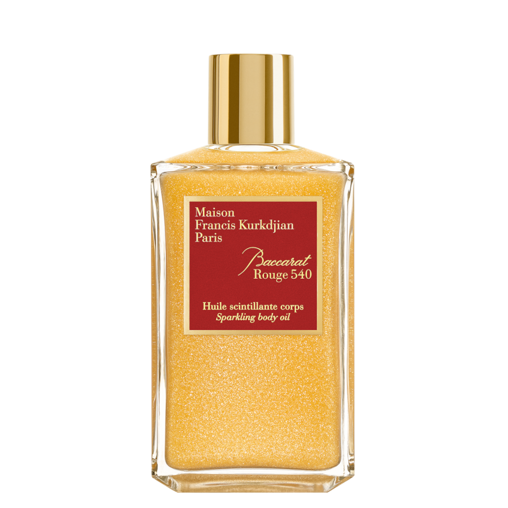 L'Olio Scintillante Baccarat Rouge 540 completa sensualmente la routine di bellezza, impreziosendo la pelle con una fragranza fiorita, ambrata e legnosa.