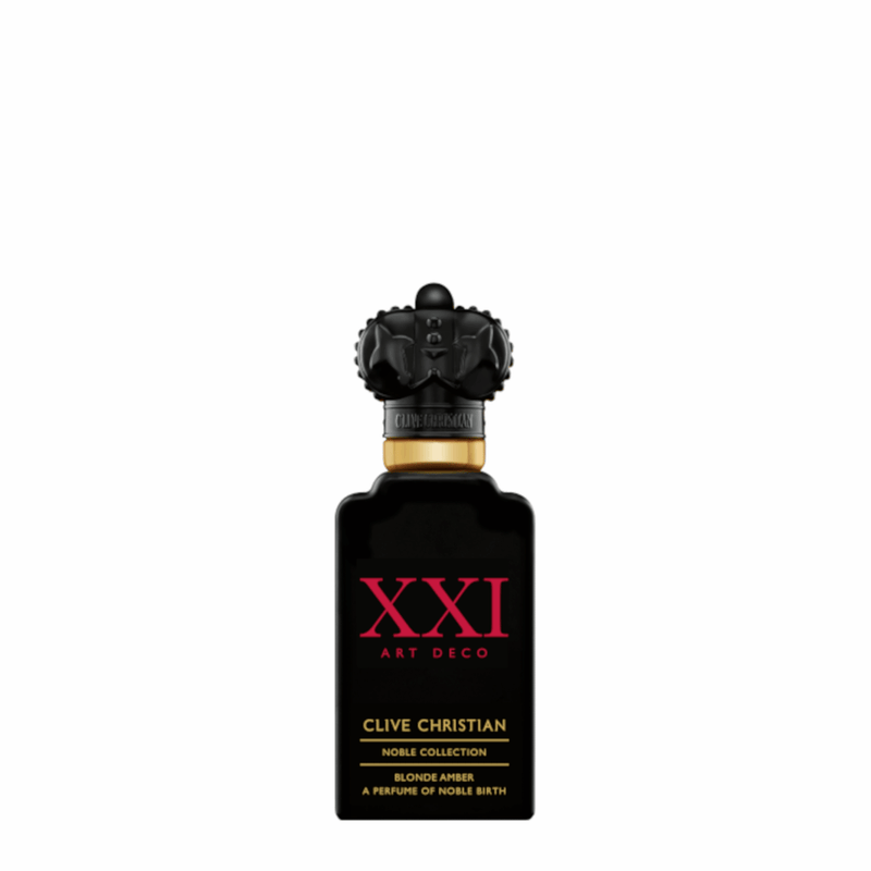 Per Blonde Amber, Clive Christian si ispira al periodo Art Deco, caratterizzato da un'architettura di grande potenza e da motivi decorativi delicati, geometrici, lineari. L'ambra era la pietra piu' amata del periodo, dai gioielli agli specchi alle lampade Tiffany.