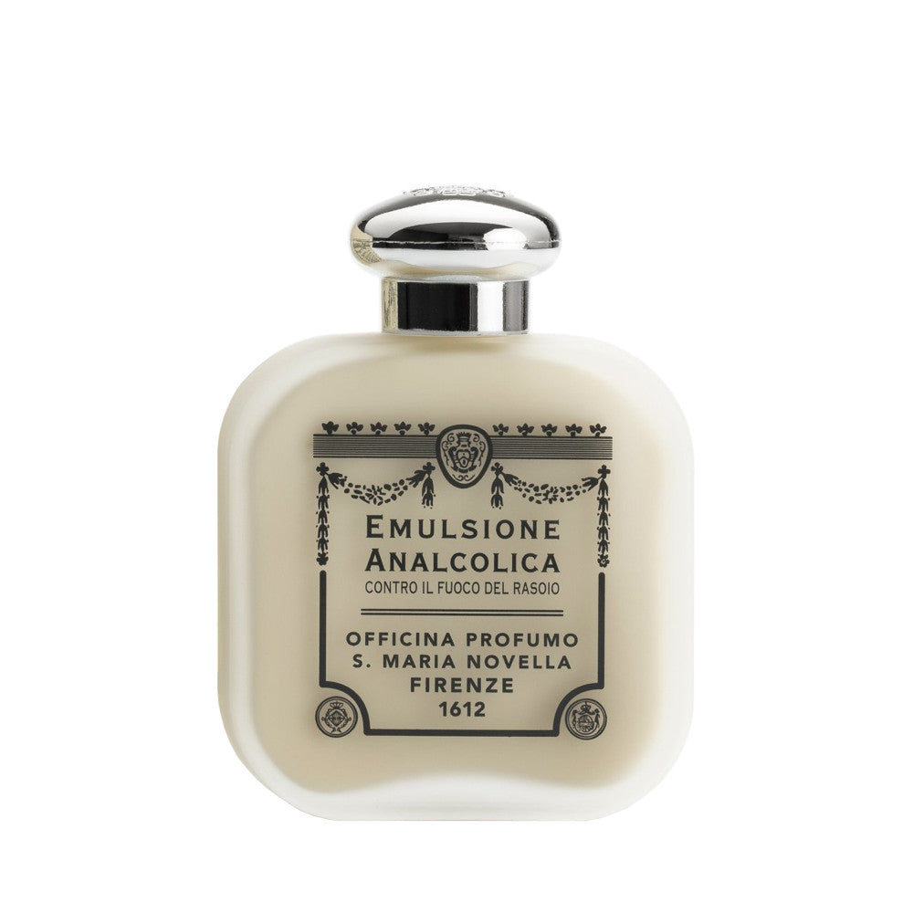 L'Emulsione Analcolica di Santa Maria Novella agisce come piacevole dopobarba rinfrescante ed idratante, con profumazione delicatamente agrumata.